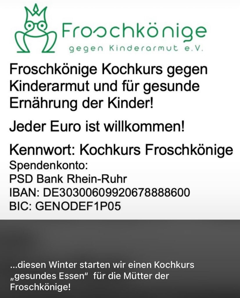 Unterstützen Sie die Aktion, für die Kinder des Vereins „Froschkönige gegen Kinderarmut e. V.“ mit einer entsprechenden Spende.